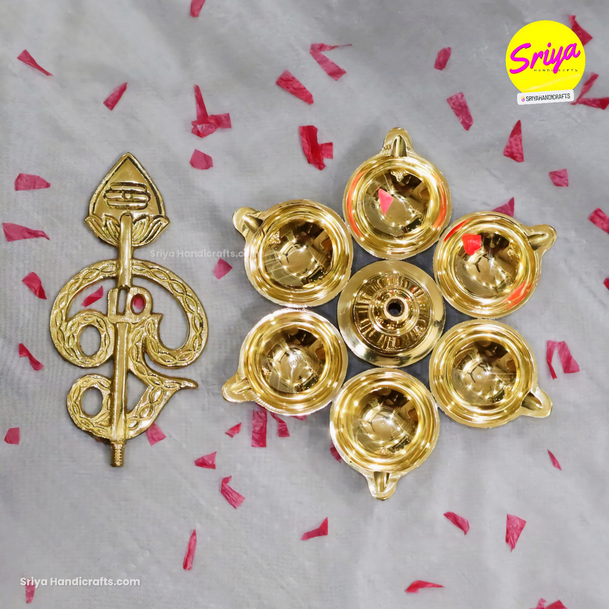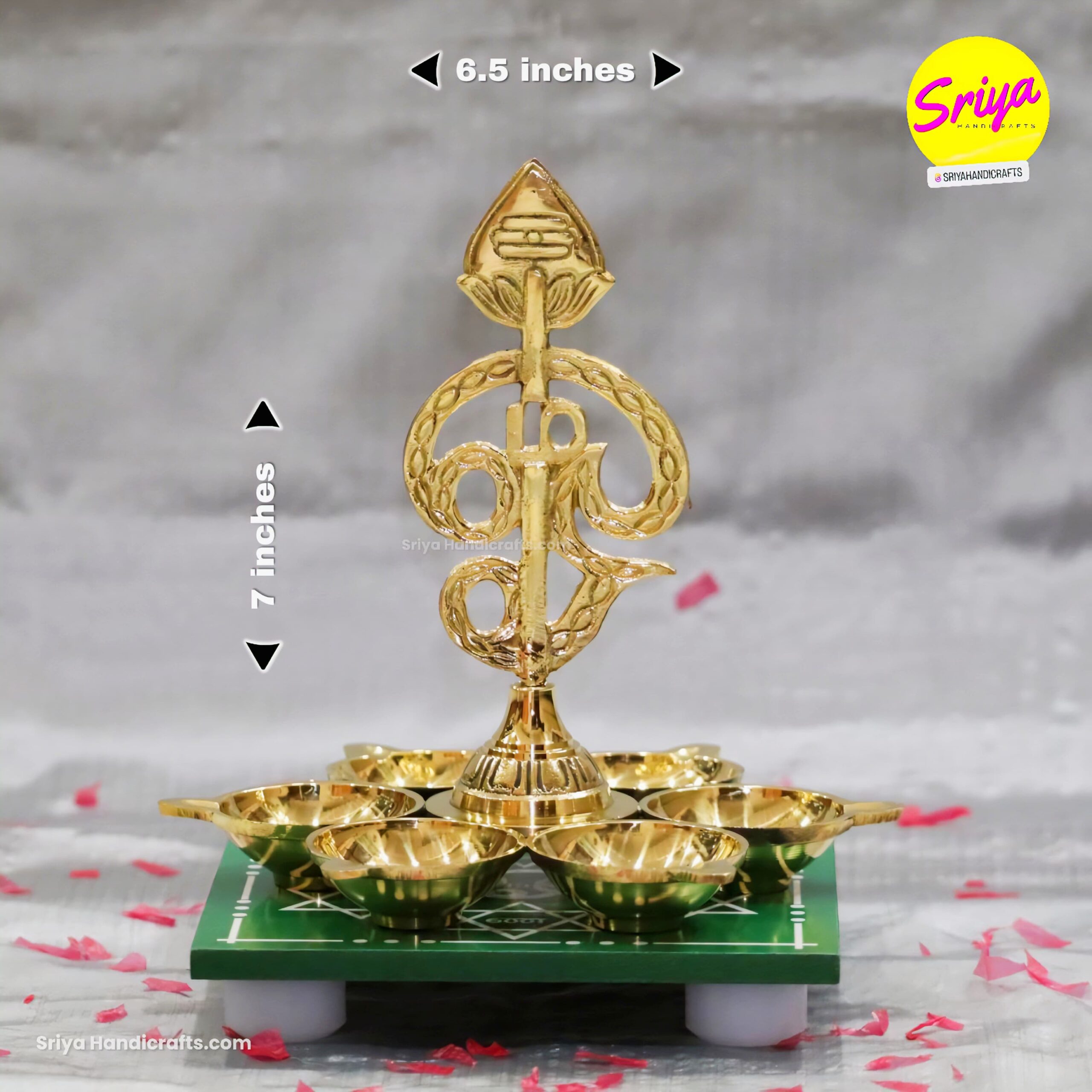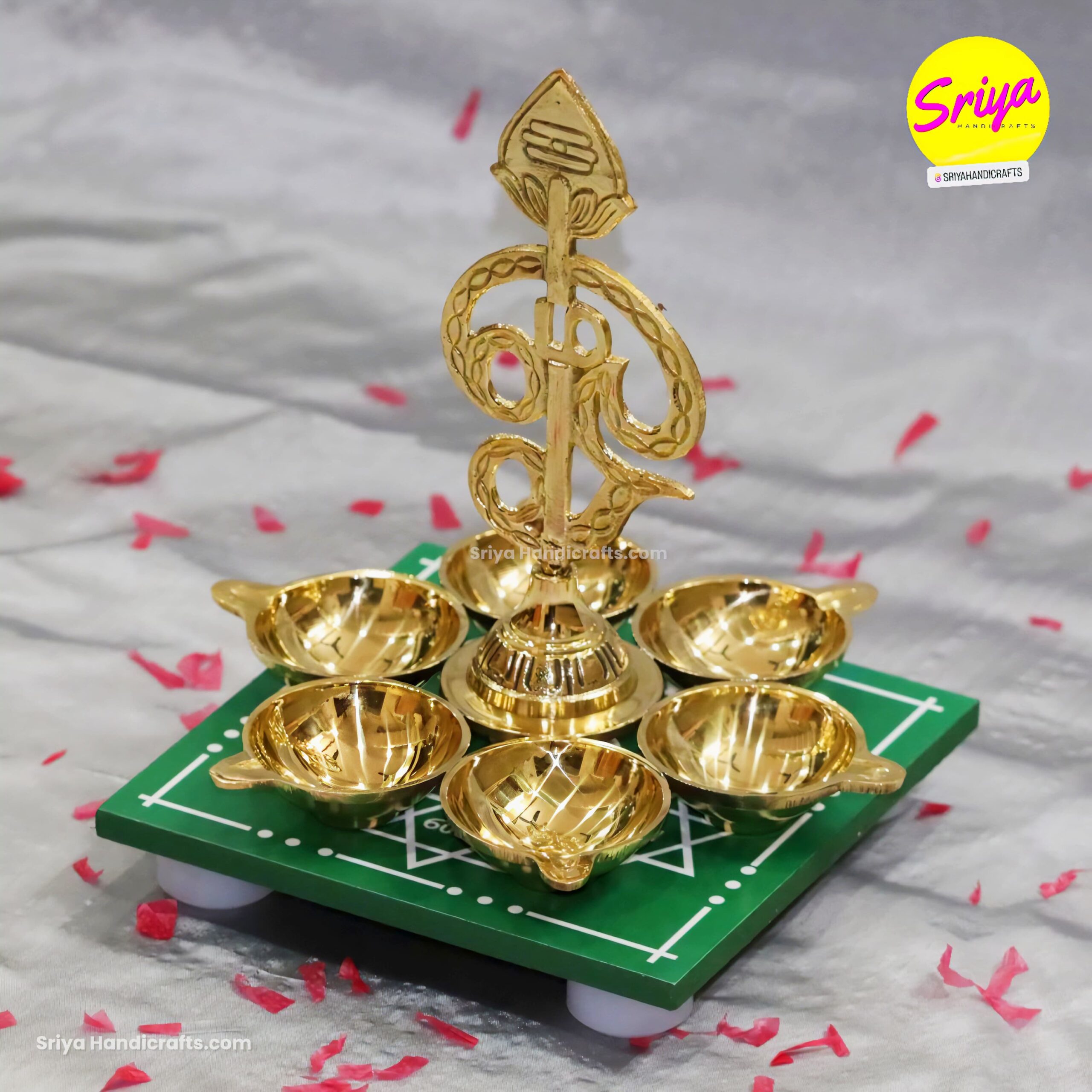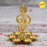 Experience divine grace with the Om Arumuga Vel Vilakku, Handcrafted brass lamp embodying Lord Murugan’s sacred Vel. This exquisite lamp adds spiritual charm to puja rituals, temples, and sacred spaces, blending tradition with artistry.